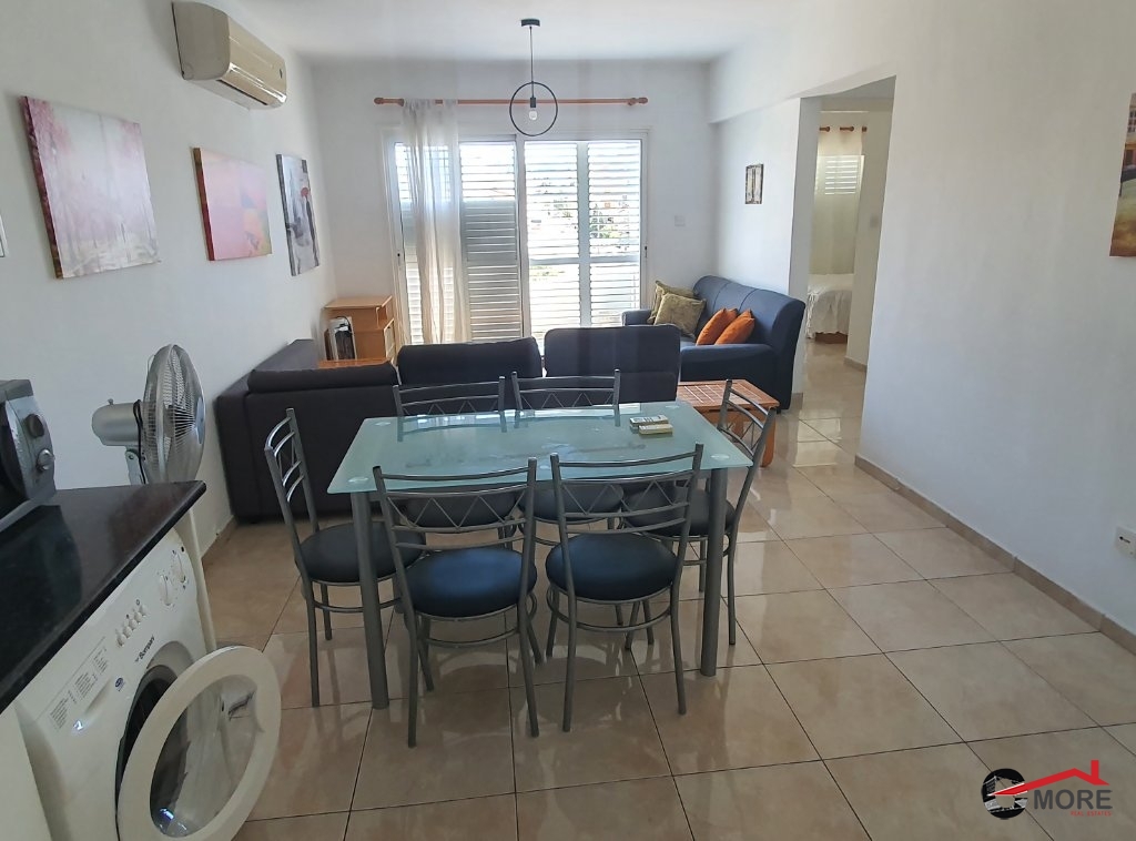 Ενοικιάζεται διαμέρισμα ενός υπνοδωματίου. Είναι επιπλωμένο με όλες τις ηλεκτρικές συσκευές και κλιματιστικά. Διαθέτει όλα τα κουζινικά σκεύη. Έχει καλλυμένο πάρκινγκ και αποθήκη. Βρίσκεται στον δεύτερο όροφο. Δεν επιτρέπονται τα κατοικίδια.