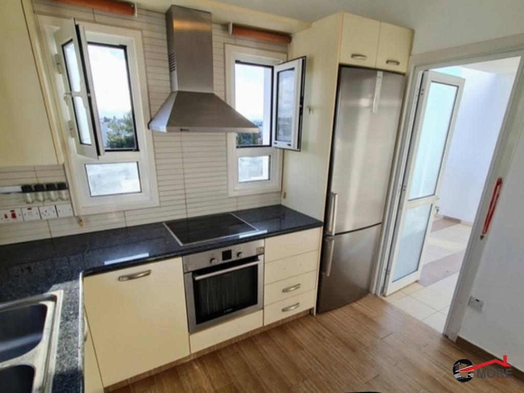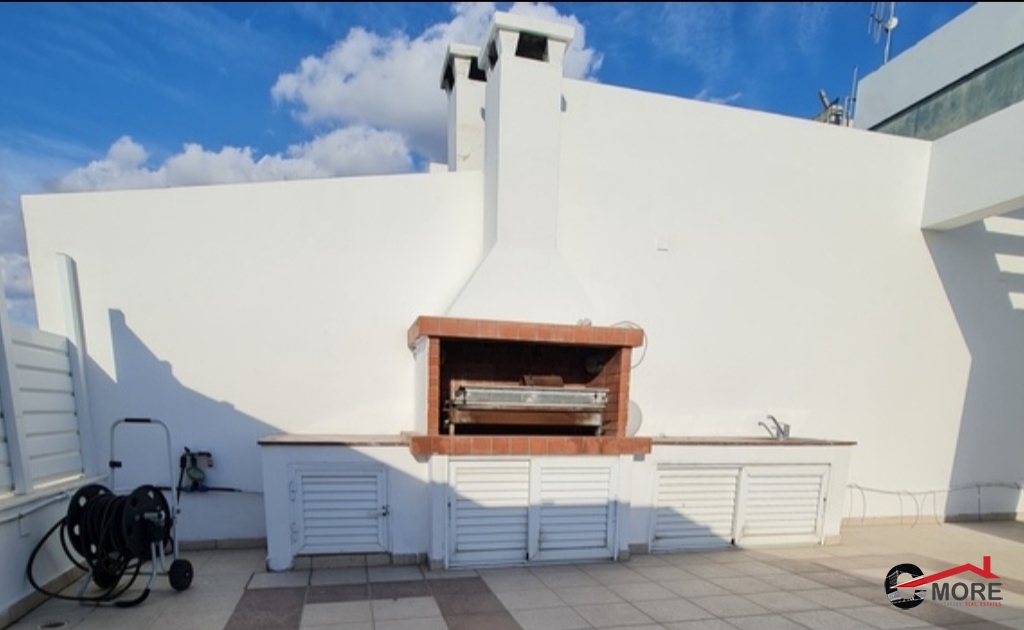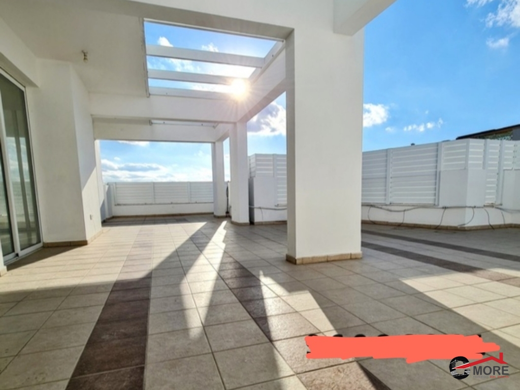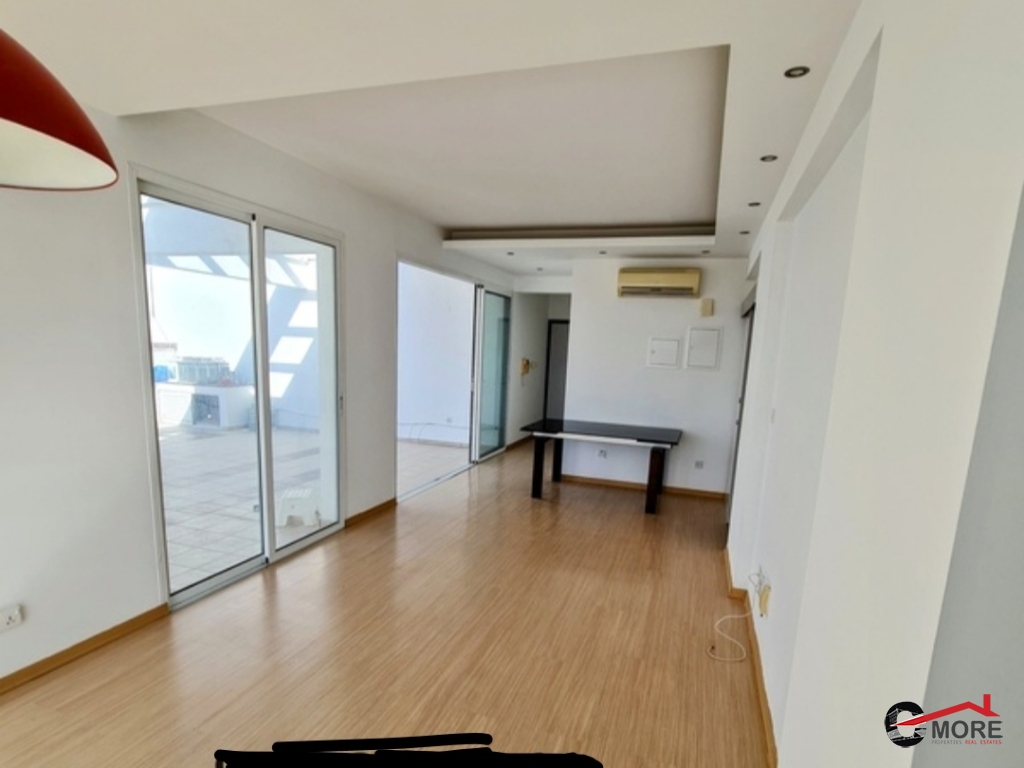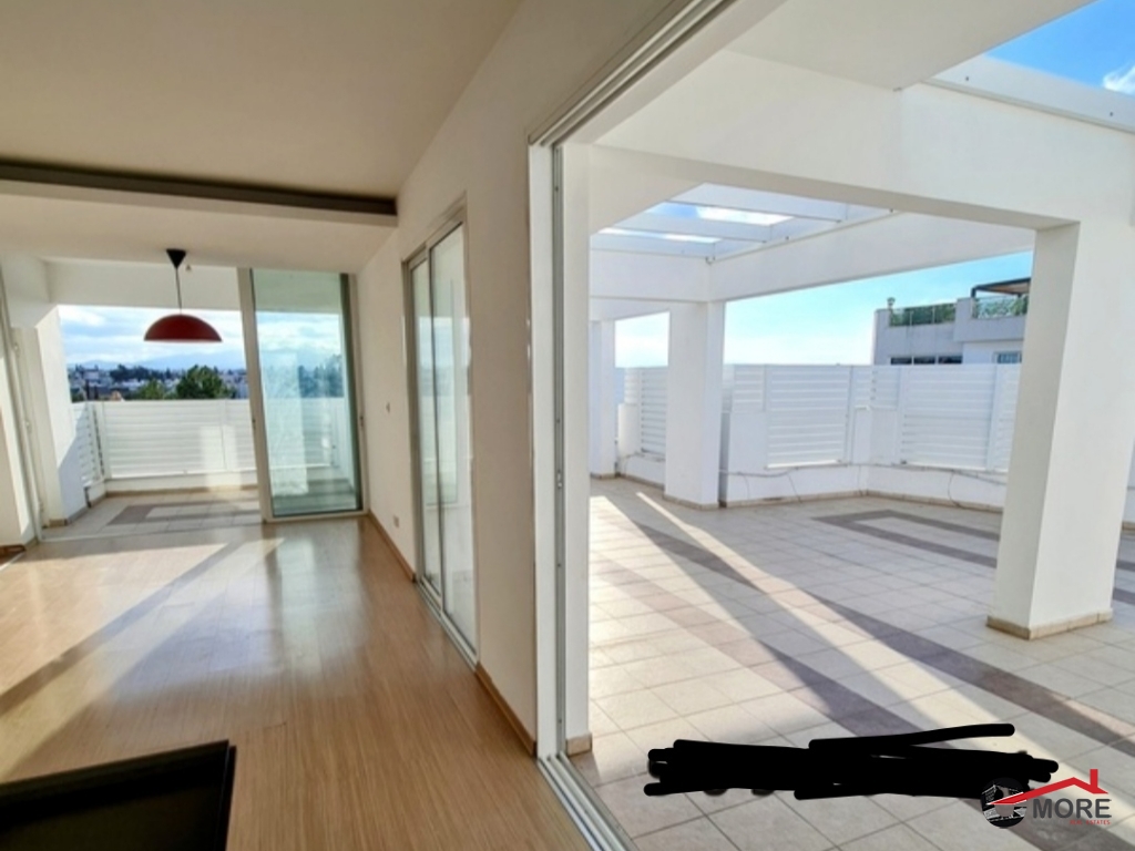 Ένα πανέμορφο διαμέρισμα 2 υπνοδωματίων, στον τελευταίο όροφο μικρής πολυκατοικίας. Με τεράστια βεράντα (105 τετραγωνικά), ψησταριά. Στο εσωτερικό υπάρχουν 2 υπνοδωμάτια, το ένα με δική του τουαλέτα και ντουζιέρα, νεροχύτη, ενώ υπάρχει ακόμη μια τουαλέτα, με νεροχύτη και μπάνιο. Σε όλα τα υπνοδωμάτια υπάρχουν εξωτερικά παράθυρα (με φυλλαράκια). Η κουζίνα έχει 3 παράθυρα και εφάπτεται του καθιστικού. Συνολικό εμβαδό 185 τετραγωνικά μέτρα.