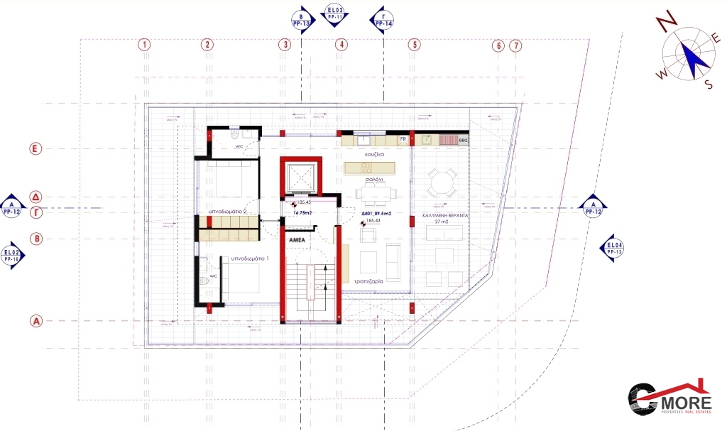 -Reinforced concrete frame comprising designed in accordance with European regulations for antiseismic construction.