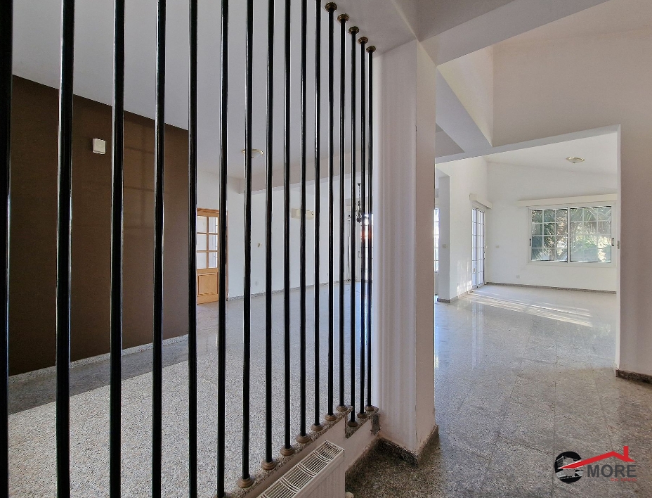 •	Είναι κτισμένη σε δυο επίπεδα και διαθέτει 5 μπάνια και 5 τουαλέτες, διαθέτει δυο χώρους σταθμεύσεις και δυο καλυμμένες βεράντες, υπάρχει κθ, και κλιματίστηκα σε όλους τους χώρους