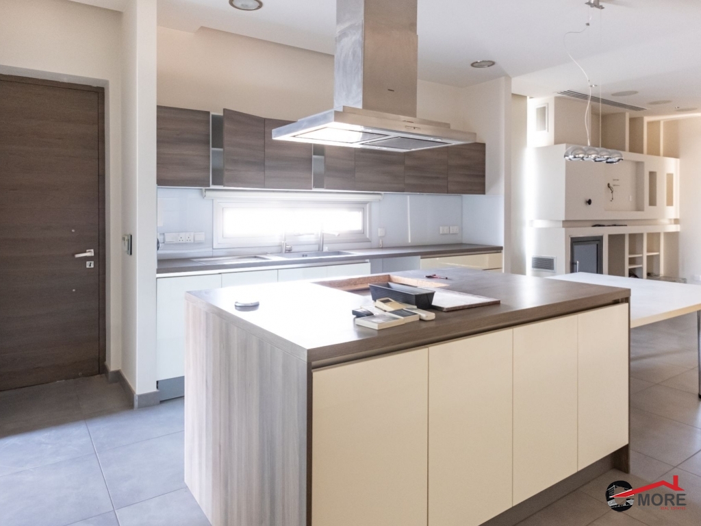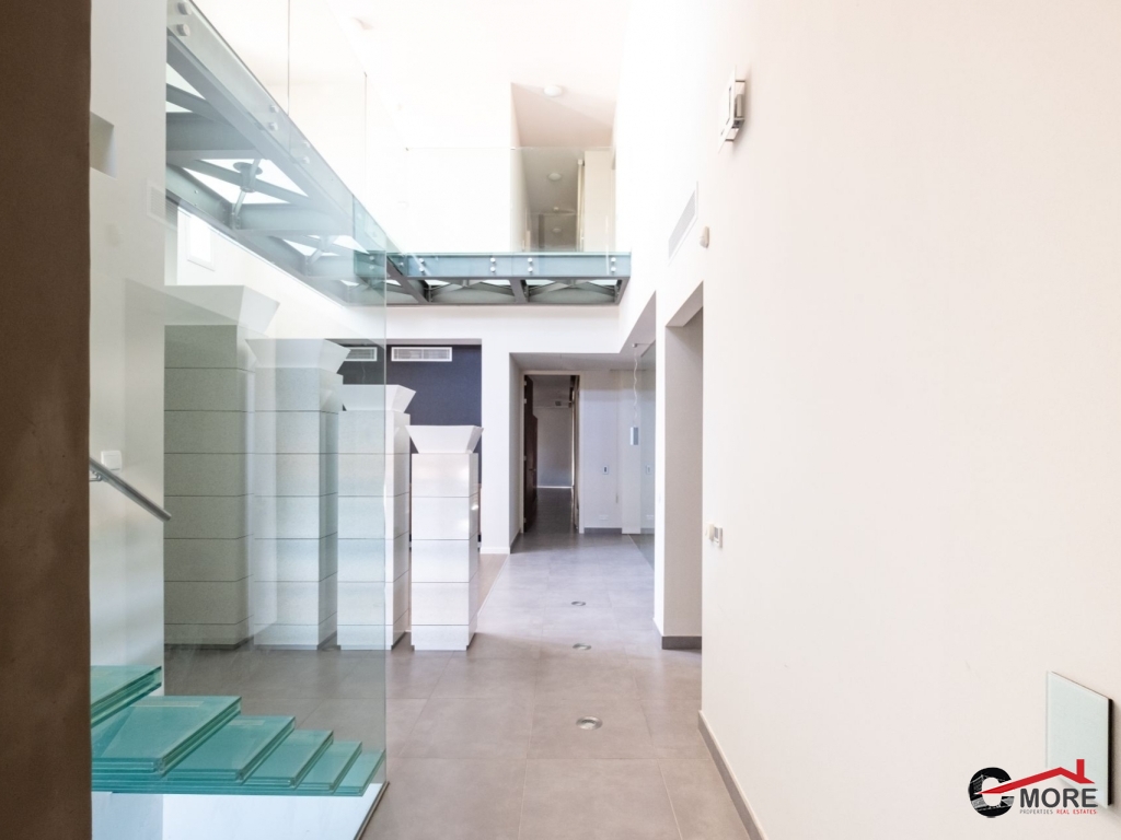 ⦁	Το ισόγειο αποτελείται από ευρύχωρο σαλόνι, ξεχωριστή τραπεζαρία, μεγάλη άνετη κουζίνα με τζάκι και καθιστικό, laundry room, playroom, τουαλέτα επισκεπτών και ξενώνα. Επίσης διαθέτει δύο μπάνια, μια μικρή κουζίνα και γραφείο, τρεις αποθηκευτικούς χώρους, ένα επιπλέον μπάνιο.