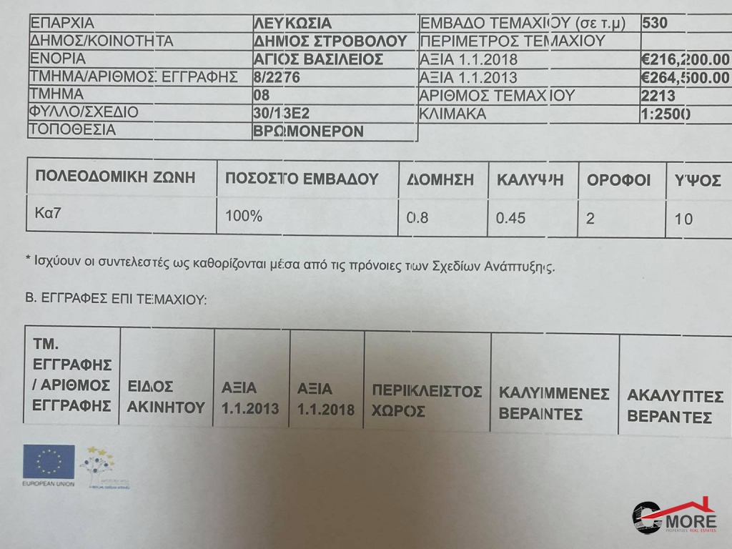 Πωλείται Οικόπεδο 530 τ.μ στo Στρόβολο-Άγιο Βασίλειο με Σ.Δ 80%