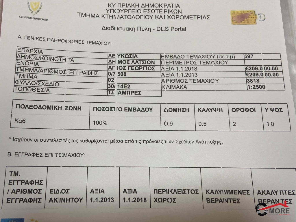 Πωλείται οικόπεδο στον Δήμο Λατσιών  90%συντελεστή Δόμησης  Εμβαδό γης: 597τ.μ ΤΙΜΗ €160,000 ΓΙΑ ΠΕΡΙΣΣΟΤΕΡΕΣ ΠΛΗΡΟΦΟΡΙΕΣ ΕΠΙΚΟΙΝΩΝΗΣΤΕ ΣΤΟ 96595536 AA310E/AM1097