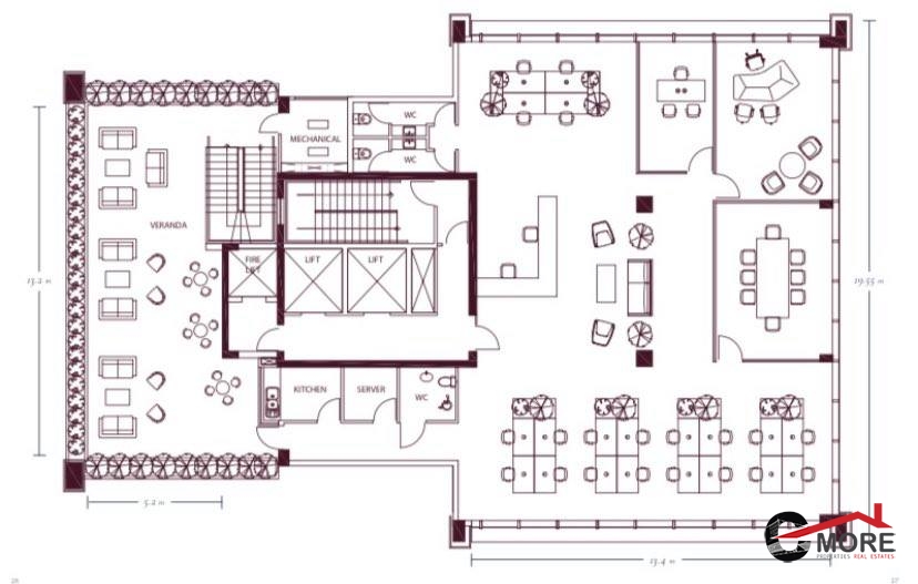 Εμβαδό 14ου ορόφου 392τ.μ.